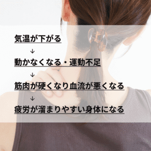 寒い日や長時間のデスクワーク、体のこりや怠さを感じる頻度が高くなったということはありませんか?